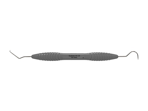 Dubbeländad undersökningssond för diagnostisering speciellt för distalytor samt för ocklusala fissurer och detektera subgingival tendsten. "Back Action" spetsen (17C) är centrerad och har en lång nedre hals.