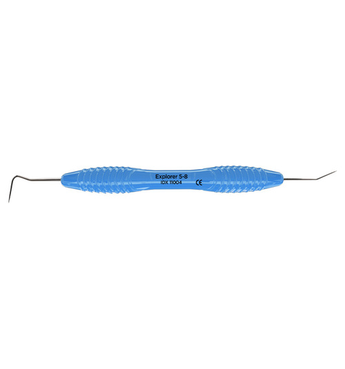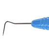 Dubbeländad sond av rostfritt stål för diagnostisering av tandsten och karies, används även för undersökning av parodontala fickor och furkationer. Ergonomiskt blått silikonhandtag, Ø 12 mm.