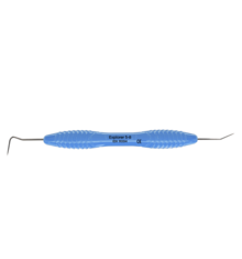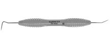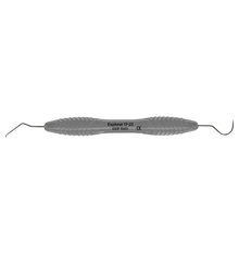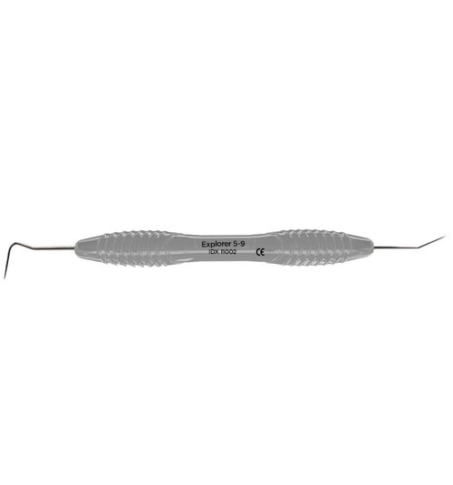 Dubbeländad sond av rostfritt stål för diagnostisering av tandsten och karies, används även för undersökning av parodontala fickor och furkationer. Ergonomiskt grått silikonhandtag, Ø 12 mm.
