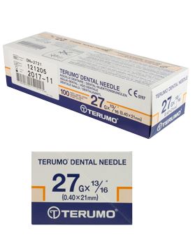 Steril injektionskanyl för cylinderampullspruta med vit ansats, tum-gänga. 27 G kort, 0,4 x 21 mm.