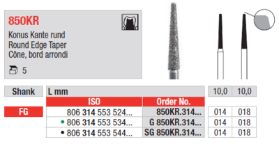 Koniskt diamantborr med rundad kant, standard, för highspeed. Kornstorlek: 107 - 126.