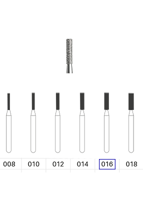 Cylinderformad preparationsdiamant med rak topp och FG-fattning. Skaft: 19 mm. Kornstorlek: Medium.