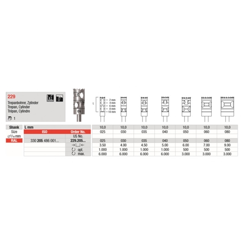 Speciellt lämplig för användning i oral kirurgi och implantat för noggrann, lätt framställning av cylindriska benimplantat och ben extraktion (benlock vid rotspetsresektion ). De goda axiella borrningsegenskaper möjliggör exakt borrning. De effektivt benskärarbladen tillåter atraumatisk behandling. De laserede djupmarkeringar per 2 mm ger exakt visualisering av penetrationsdjupet .