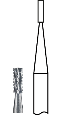 Hårdmetallborr rak fissur tvärhuggen, förlängd 26,5 mm för vinkelstycke. Storlek: 557. ISO storlek: 010.
