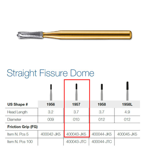 Finbladigt specialborr för guld och amalgam, längd arbetsdel 3,7 mm.