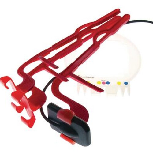 3 röda hållare för liggande bitewing + 1 siktring