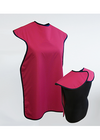 Röntgenskyddsförkläde utan krage för sittande patient. Bakknäppt förkläde av flexibelt blygummi med yta i Comfor-tex, blyekvivalens Pb 0,5 mm. Färg: Orchidee (rosaröd).