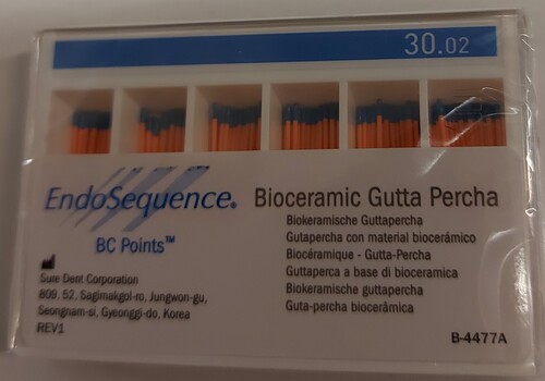 EndoSequence BioCeramic Points är impregnerade med bioceramiska nanopartiklar och får en kemisk bindning till både sealer och dentin vid härdning. Pointsen är styvare än normal guttaperka. De har djupmarkeringar vid 17, 19, 20, 21, 23 och 25 mm. ISO färgmarkerade tipstorlekar.