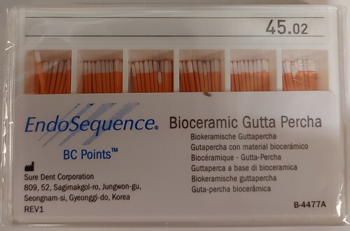EndoSequence BioCeramic Points är impregnerade med bioceramiska nanopartiklar och får en kemisk bindning till både sealer och dentin vid härdning. Pointsen är styvare än normal guttaperka. De har djupmarkeringar vid 17, 19, 20, 21, 23 och 25 mm. ISO färgmarkerade tipstorlekar.