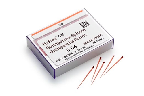 Guttaperkaspetsar perfekt anpassade till Hyflex CM NiTi filar, för att underlätta en optimal behandlingsprocess. Spetsarna motsvarar respektive filstorlekar och har den perfekta avsmalningen för att snabbt och enkelt obturera rotkanalen. Spetsens storlek kan lätt identifieras genom färgkodningen i toppen. Längd: 28 mm. 60st/förp.