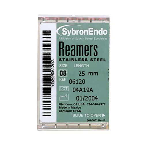 ISO 08, längd 25 mmDessa rymmare är tillverkade av rostfritt stål. De har en triangulär form, vriden som en skruv. Rymmarna är förpackade sex per låda. Lådan, som är tillverkad av slagtålig, klar plast, är märkt med linjer på utsidan , så längden på filen lätt kan urskiljas. Filarna finns i en rad färgkodade storlekar.