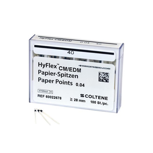 HyFlex CM absorberande pappersspetsar används för att torka rotkanaler som har förberetts med HyFlex CM-filar. Färgkodade för enkel identifiering. Längd: 28 mm. 100st/förp.