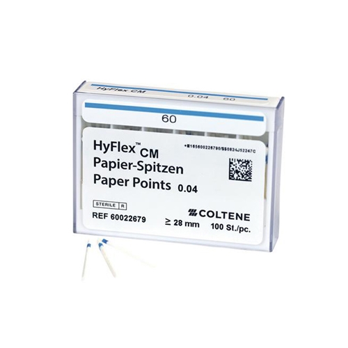 HyFlex CM absorberande pappersspetsar används för att torka rotkanaler som har förberetts med HyFlex CM-filar. Färgkodade för enkel identifiering. Längd: 28 mm. 100st/förp.