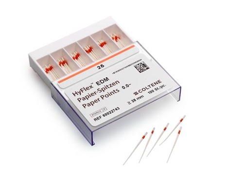 HyFlex EDM absorberande pappersspetsar används för att torka rotkanaler som har förberetts med HyFlex EDM-filar. Färgkodade för enkel identifiering. Längd: 28 mm. 100st/förp.