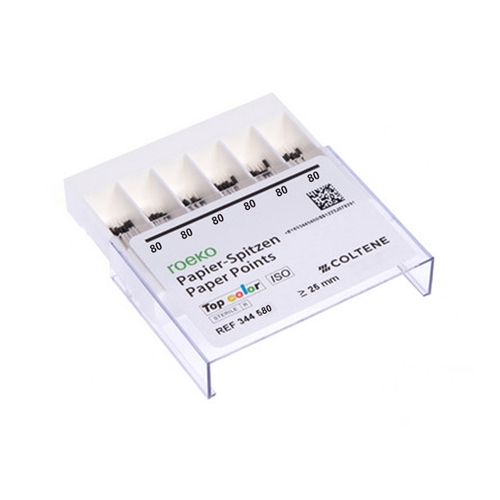 Sterilförpackade papperspetsar med färgkodning för enklare hantering. Längd 25 mm.