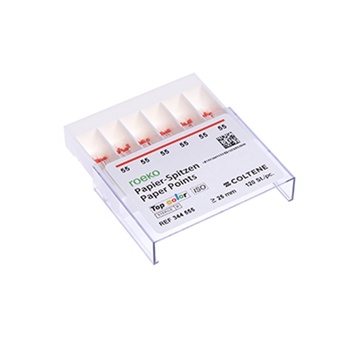 Sterilförpackade papperspetsar med färgkodning för enklare hantering. Längd 25-28 mm.