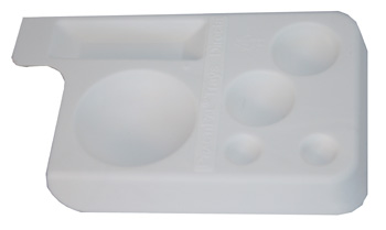 Engångsbricka med fördjupningar för vätskor passar i Multiblock men kan även användas separat.