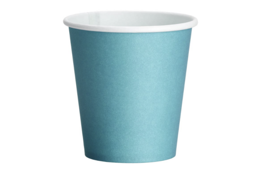 Pappersbägare med vit insida och ljusblå utsida. Färg: ljusblå/vit.