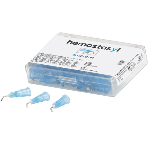 Vinklade applikationsspetsar till Hemostasyl blodstillande gel. Engångs. Innehåll: 40st/förp.