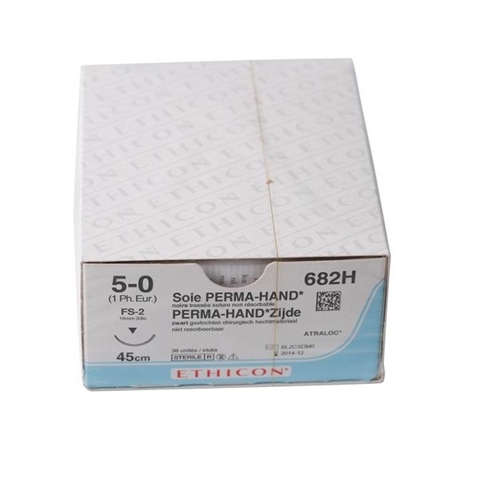 Svart, flätad silkessutur. Ej resorberbar. FS-2 nål.
