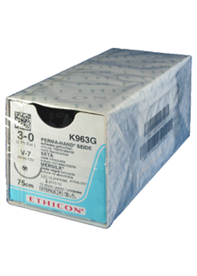 Svart, flätad silkessutur. Ej resorberbar. Taper Cut V-7 nål.