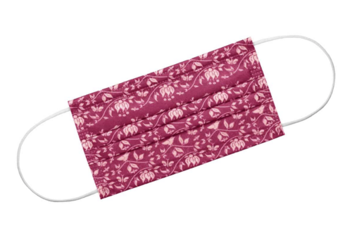 3-lagers glasfiberfritt munskydd designat med fräscht mönster, näsklämma och elastiska öronsnoddar.