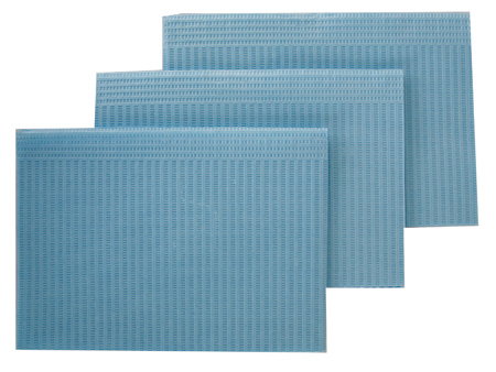 Dentalservetter med 2-lagers papper + 1-lagers PE, patenterad design för Dry-Back. Stl 33x45,5cm. Färg: blå. 500st/förp.