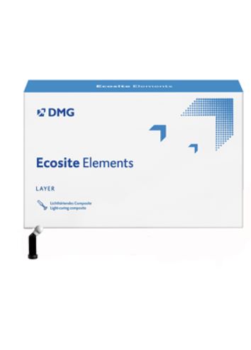 Ljushärdande estetisk emaljfärg av nanohybrid komposit som med ett fåtal färger täcker 98 % av alla restaurationer. Har en "Push & Flow" effekt, en fast konsistens som snabbt blir mjukare under modellering. Detta gör att kompositen flyter ut in i minsta vrå men är lätt att forma och skulptera. Ecosite Elements består av 3 moduler som ger maximal möjlighet av kombinationer för ett superbt resultat: PURE med 5 VITA-färger, LAYER med 4 emaljfärger samt Highlight med 4 karaktärsfärger för indivualisering och täckning av missfärger. Radiopak. Färg: ED (Enamel Dark).