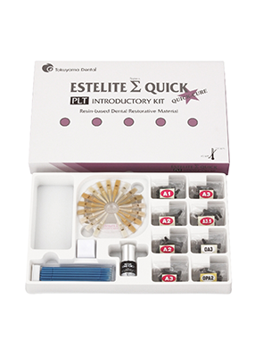 Förpackning: Sigma Quick Estelite kapslar 5x0,2 g A1, 10x0,2 g A2, 10x0,2 g A3, 5x0,2 g A3,5, 5x0,2 g OA3, 5x0,2 g OPA2, 1 ml Bond Force bonding, appliceringstillbehör