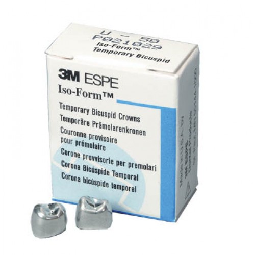 Provisoriska, anatomiskt utformade kronor i tenn- och silverlegering. Kemisk bindning till alla temporära cement. Ingen smak.