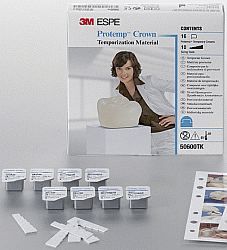 Mjuk singelkrona i komposit, kräver inget avtryck. Lätt att forma ocklusalyta och approximala kontakter. Välj storlek med hjälp av mätstickan, klipp till formen och ljushärda 60 sek. Cementera därefter med temporärt cement.