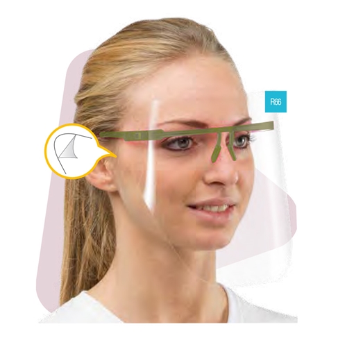 Autoklaverbar skalm i upp till 121°. Visiren skyddar ögon, näsa och mun.