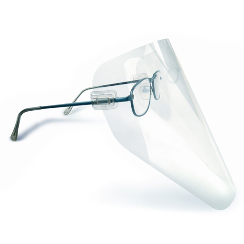 Clipon, plastclips som enkelt fästs på glasögonskalmarna för att sedan fästa plastvisir i. Justeras lätt till önskat höjd/bredd av visiret.