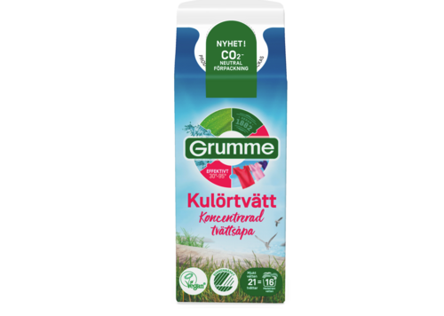 Grumme Kulörtvätt är ett flytande tvättmedel som effektivt tar bort fläckar från färgade klädesplagg och tyger. Kulörtvättmedlet innehåller ingredienser som binder upp lösa färgpigment i tvättvattnet vilket förhindrar att det färgar av sig på tvätten. Det flytande tvättmedlet har även en behaglig doft och är effektivt redan vid 30 grader.