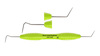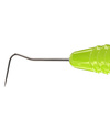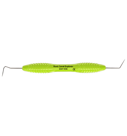 Dubbeländad rotkanalssond med långa raka vassa spetsar som underlättar lokalisationen och öppnandet av rotkanaler så att de egentliga prepareringsinstrumenten kan komma åt. Kan även användas för att ta bort spårmängder av förkalkning. Ergonomiskt ljusgrönt (lime) silikonhandtag, Ø 13,5 mm.