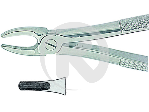 TC-belagd. Övre framtänder och kuspar, mönstrad näbb.