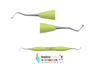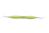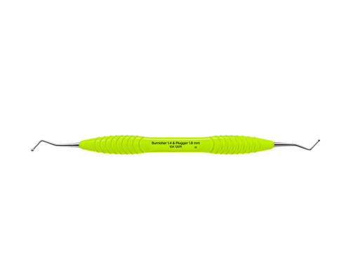 Kulstoppare/punsare med runda arbetsdelar 1,4-1,8 mm av rostfritt stål för att stoppa och forma tandfyllnadsmaterial . Ergonomiskt ljusgrönt (lime) silikonhandtag, Ø 12 mm.