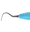 Dubbeländat kondenseringsinstrument av rostfritt stål för placera och forma flytande kompositer. Ergonomiskt blått silikonhandtag Ø 13,5 mm.