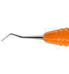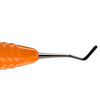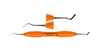Dubbeländat planinstrument av rostfritt stål för modellering och placering av tandfyllnadsmaterial. Ergonomiskt oranget silikonhandtag, Ø 13,5 mm.