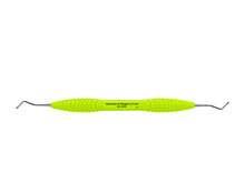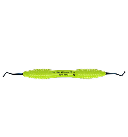 Kulstoppare/punsare med runda arbetsdelar 1,9-2,3 mm av rostfritt stål för att stoppa och forma tandfyllnadsmaterial . Ergonomiskt ljusgrönt (lime) silikonhandtag, Ø 13,5 mm.