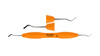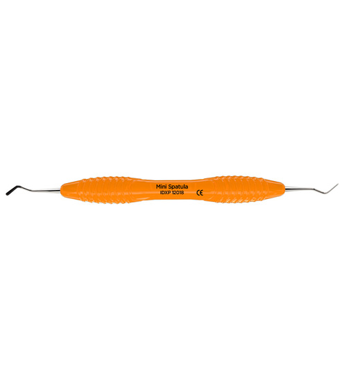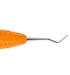Dubbeländat planinstrument av rostfritt stål för modellering och placering av tandfyllnadsmaterial. Ergonomiskt oranget silikonhandtag, Ø 13,5 mm.