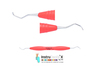 Dubbeländad universalcurette av rostfritt stål som används supragingivalt och subgingivalt. För incisiver, caniner och premolarer. Bladet är lätt böjt med en kort nedre hals. Ergonomiskt rött silikonhandtag, Ø 12 mm.
