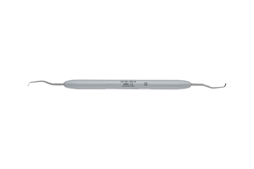 Dubbeländad finisheringscurette för avlägsnande av djup subgingival tandsten och finishering av subgingivala rotytor på incisiver och premolarer.