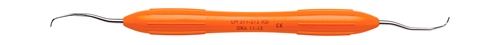 Dubbeländad finisheringscurette för avlägsnande av djup subgingival tandsten och finishering av subgingivala rotytor på mesialytor hos premolarer och molarer.
