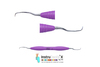 Dubbeländad universalcurett för avlägsnande av supragingival och subgingival tandsten. Langer kombinerar Gracey curettens halsböjning med universalcurettens arbetsdel. För premolarer och molarer i underkäken. Ergonomiskt lila silikonhandtag, Ø 12 mm.