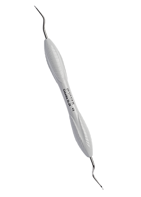 Dubbeländad universalcurette för användning supra-och subgingivalt.