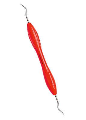 Dubbeländad universalcurette för användning supra-och subgingivalt.