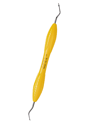 Universalcurette med stadigt blad och styv hals för avlägsnande av supragingival och subgingival tandsten,