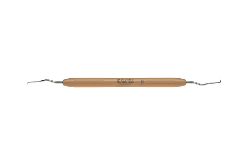Curette för avlägsnande av djup subgingival tandsten och finishering av subgingivala rotytor på mesialytor hos molarer, mer vinklad i halsen än Gracey Mini 11-12.