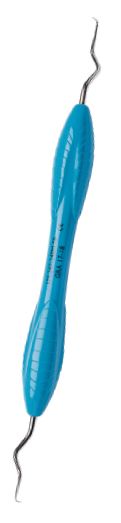Curette för avlägsnande av djup subgingival tandsten och finishering av subgingivala rotytor på distalytor hos molarer, mer vinklad i halsen än Gracey 13-14.